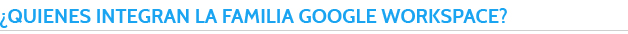 La familia Google Workspace, está compuesta por herramientas de comunicación, almacenamiento, colaboración y administración.